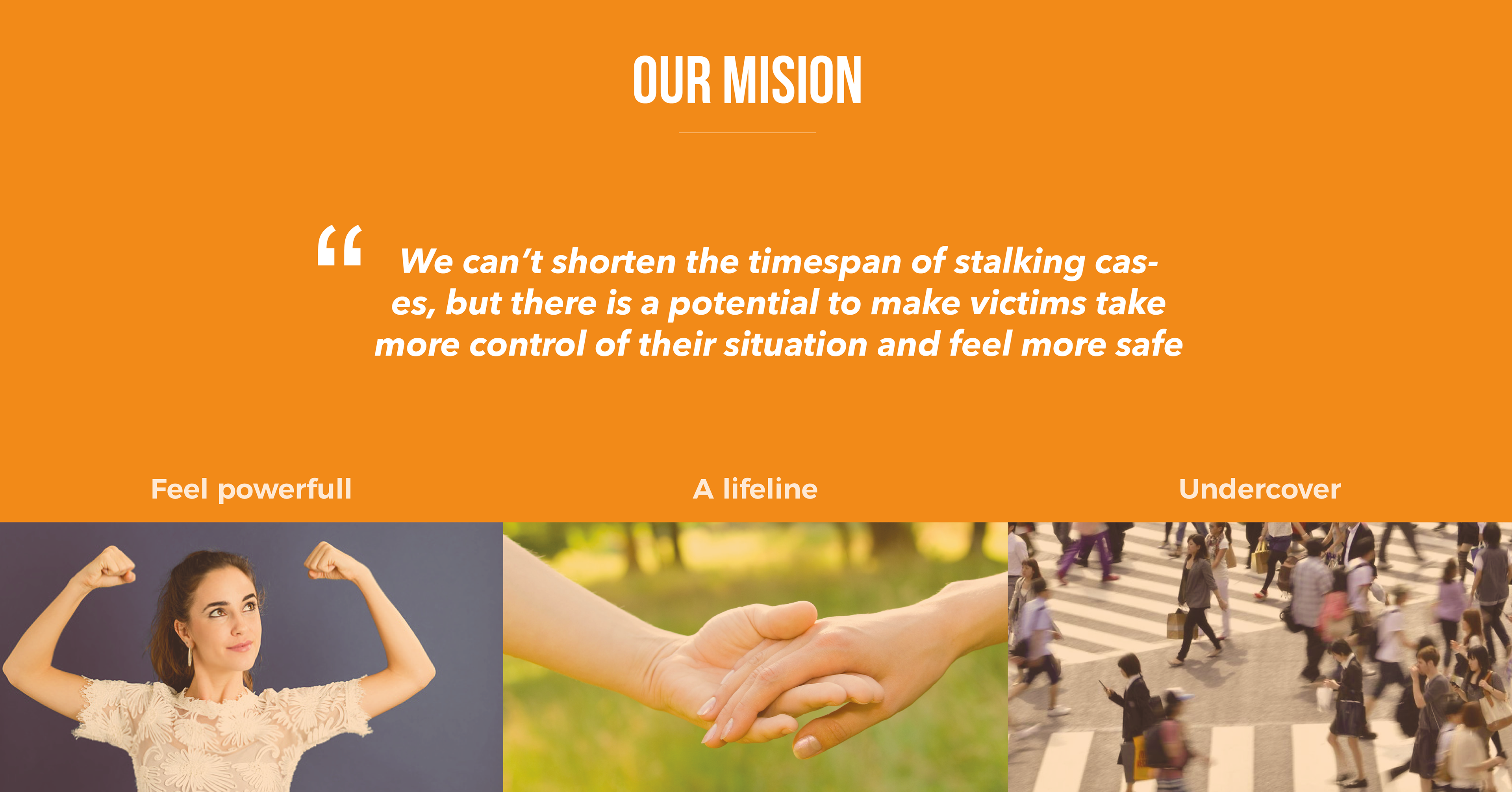 Personer, der er udsat for stalking, lever i konstant frygt og føler, at deres liv bliver kontrolleret af en anden. Med projektet Invisa er målet at genoprette deres kontrol og følelsen af ikke at være alene. Gennem interviews med Nordjyllands Politi, Mødrehjælpen og krisecentre identificeres de grundlæggende behov for denne gruppe.