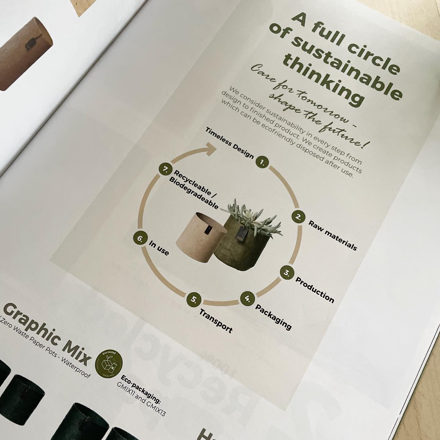 Gennem bevidst brug af farver, typografi, billeder og grafieke elementer skabte jeg en. visuel linje , hvor hvert valg understøttede 3 centralle værdier: Ansvarlig produktion, socialbæredygtighed, skandinavisk design.