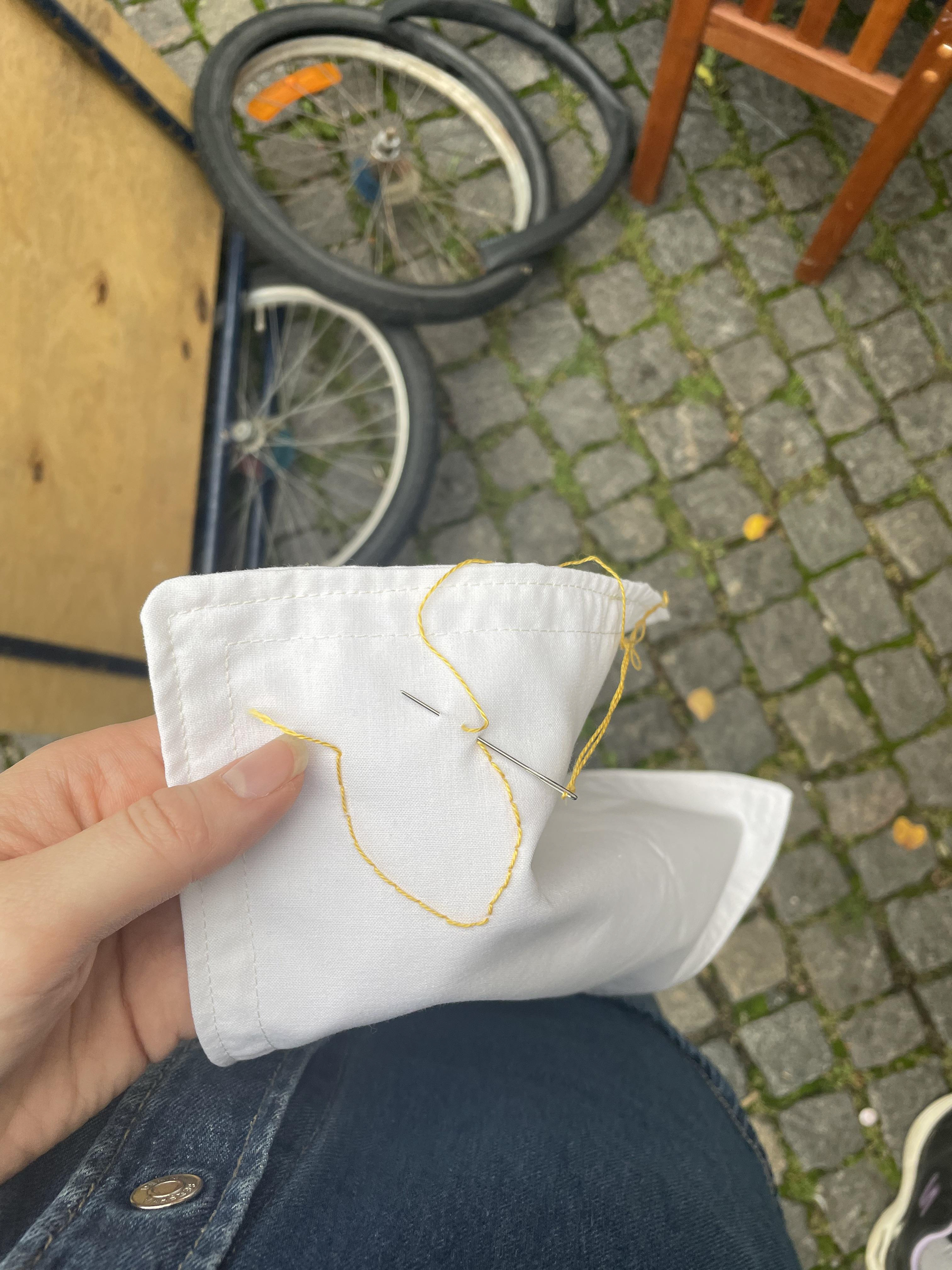 I teltet kunne borgere få masser af inspiration til hvordan man kan passe på og reparere sine ting. I teltet kunne de også deltage i workshop hvor de kunne upcycle gamle langer. Vi havde nemlig stillet lagene, symaskiner, brodeigrej og vejledning til rådighed.
